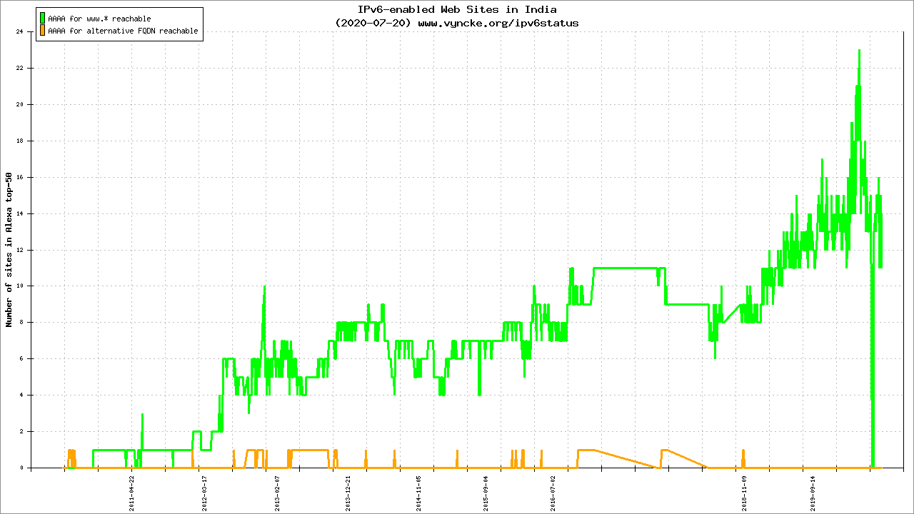 圖6 印度TOP 50網站IPv6支持數量趨勢