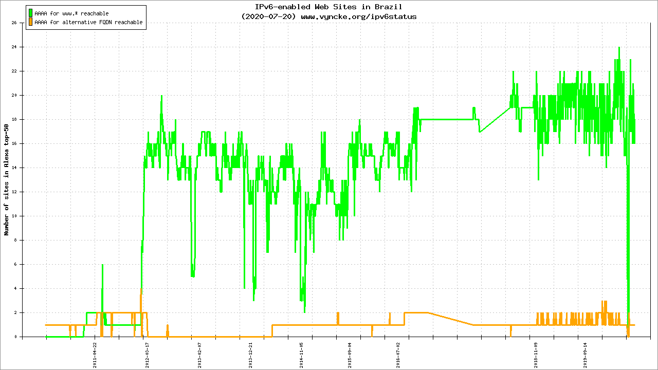 圖7 巴西TOP 50網站IPv6支持數量趨勢