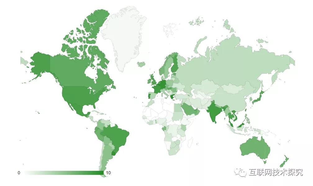 從思科(Cisco)提供的全球 IPv6 部署情況統計數據(圖1)來看,截止到2020年6月,綜合IPv6部署率在30%左右或以上的國家或地區占了地圖面積一半以上。全球IPv6部署率是根據各個國家地區的網絡(IPv6 Prefix/Transit IPv6 AS),IPv6網站及IPv6用戶等數據按照一定權值并計算得出的IPv6部署綜合情況。圖中顏色越深的地區,表示其IPv6部署程度越高,相應的IPv6部署率數值越大。