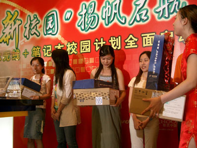 有沒有可能讓每個大學生都能擁有自己的筆記本電腦,每個大學生能隨時隨地上互聯(lián)網(wǎng)學習?這并不是天方夜譚。6月9日,中國教育和科研計算機網(wǎng)(CERNET)在清華大學宣布啟動“網(wǎng)絡(luò)新校園”行動計劃,在建設(shè)100所無線校園網(wǎng)的同時,力爭在2006年向全國大學生提供30萬臺特供筆記本電腦,并在國內(nèi)大學逐步推廣大學生筆記本電腦普及計劃。同時CERNET將為大學生提供貸款購機擔保,最低每日支付10元人民幣就可以購買一款學生用筆記本電腦。同時,這些同學也將第一次享受到IPv6/IPv4雙網(wǎng)接入服務(wù),提前享受到下一代互聯(lián)網(wǎng)接入服務(wù)。