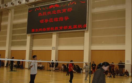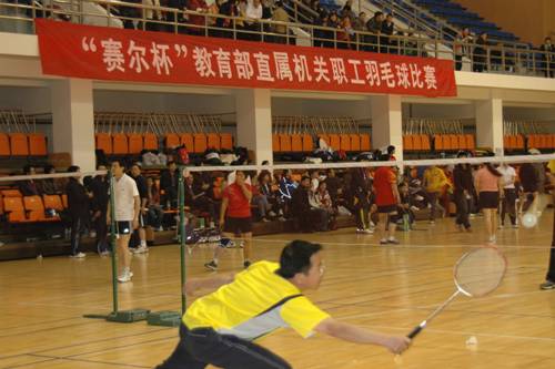 由教育部直屬機(jī)關(guān)工會(huì)主辦、教育部科技發(fā)展中心承辦、賽爾網(wǎng)絡(luò)有限公司協(xié)辦的“2007年‘賽爾杯’教育部直屬機(jī)關(guān)職工羽毛球比賽”于11月14日在北京郵電大學(xué)羽毛球館正式開(kāi)球比賽。來(lái)自教育部機(jī)關(guān)、直屬單位的31個(gè)代表隊(duì),以及20多位司局長(zhǎng)參加比賽。本屆比賽持續(xù)三天,將在16日進(jìn)行決賽與頒獎(jiǎng)。