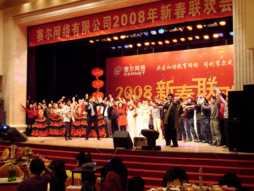 1月30日晚19:00,北京西郊賓館一號樓銀杏大廳內座無虛席、歡聲笑語,洋溢著節日的氣氛。以“共建和諧教育網絡,同創賽爾成功未來”為主題的賽爾網絡有限公司2008新春聯歡會在這里隆重舉行,清華大學領導與CERNET專家、公司領導、全體員工以及分公司、子公司的代表380多人歡聚一堂,共慶佳節。