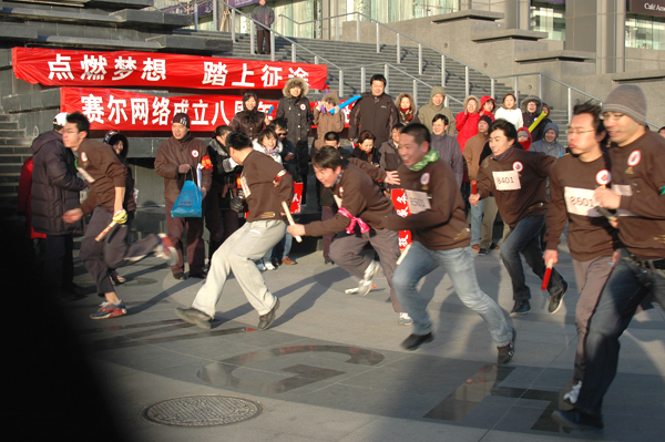 為了熱烈慶祝賽爾網(wǎng)絡(luò)成立八周年,12月29日,公司于清華科技園舉行“點(diǎn)燃?jí)粝?踏上征途”長(zhǎng)跑接力活動(dòng)。公司領(lǐng)導(dǎo)與在京員工熱情參與,8支代表隊(duì)的運(yùn)動(dòng)員充分弘揚(yáng)賽爾網(wǎng)絡(luò)團(tuán)結(jié)、拼搏、堅(jiān)持的精神,在接力長(zhǎng)跑活動(dòng)中奮勇爭(zhēng)先,展示了賽爾網(wǎng)絡(luò)團(tuán)結(jié)一致、永不言棄的精神風(fēng)貌。