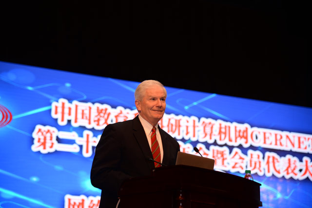 教育部科技司司長王延覺在致辭中表示,CERNET作為我國教育信息化和國家信息化的重要基礎設施,同樣面臨轉型發展的挑戰,如何從跟蹤模仿到創新發展和引領發展,如何在即將開始的"十三五"乃至今后的十年、二十年,為中國的互聯網發展和信息化進程作出更大的貢獻,是全體CERNET成員必須認真思考的重大問題。借此機會,他對CERNET提出了三點希望:一是不斷提升CERNET的網絡質量與服務水平,積極支持各類教學和管理應用,為"十三五"期間全面推動教育信息化工作,為構建網絡化、數字化、個性化、終身化的教育體系,提供更先進、更安全的網絡環境;二是聯合CERNET各節點高校,承擔國家未來網絡重大科技基礎設施和網絡空間安全重大科技項目,繼續推動下一代互聯網的發展和技術創新,保持在國際國內的技術領先優勢,爭取為國家做出更大貢獻;三是吸引更多年輕人參與互聯網技術研究,鼓勵開發創新型應用,培養更多國家需要的網絡信息安全和網絡技術創新人才。