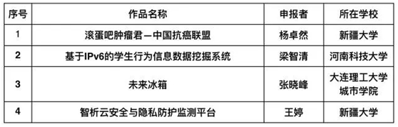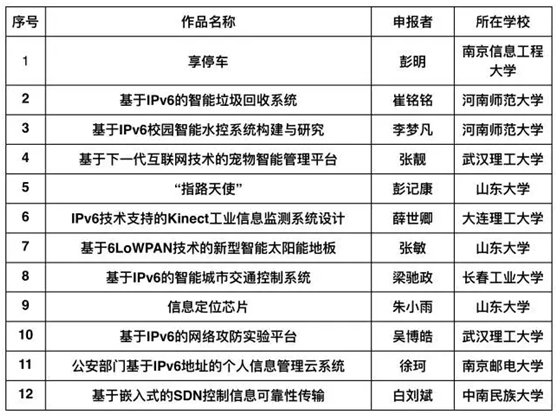 首頁 新聞動態 公司新聞 第二屆下一代互聯網技術創新大賽地區初賽結果公示 來源: 時間:2016-12-01 2016年11月16日至11月30日,第二屆下一代互聯網技術創新大賽初賽在華北、西北、西南、華南、華中、華東南、華東北、東北八個賽區順利舉辦。經過40余位下一代互聯網技術與應用領域專家對參賽作品的評審,本屆大賽地區初賽階段共產生獎項49個,其中創意組一等獎12名、二等獎9名、三等獎4名;實踐組一等獎12名、二等獎2名、三等獎10名?,F將獲獎名單公布如下: 創意組一等獎(入圍全國決賽) 創意組二等獎 創意組三等獎 實踐組一等獎(入圍全國決賽) 實踐組二等獎 實踐組三等獎