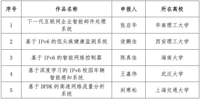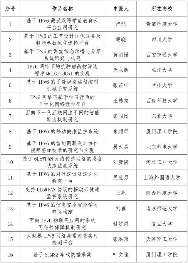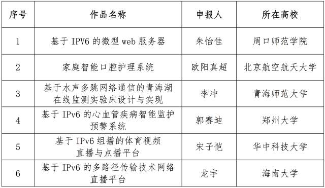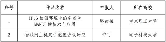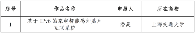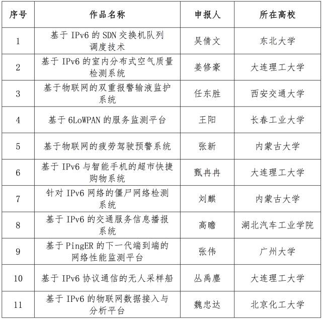 12月10日,面向全國大學生的下一代互聯網技術創新大賽在清華大學落幕,來自南京理工大學的IPv6校園環境中的多角色MANET的技術與應用、電子科技大學的物聯網主機定位配置協議研究、和上海交通大學的基于IPv6的家電智能感知貼片互聯系統從230多個作品中脫穎而出,獲得大賽一等獎。