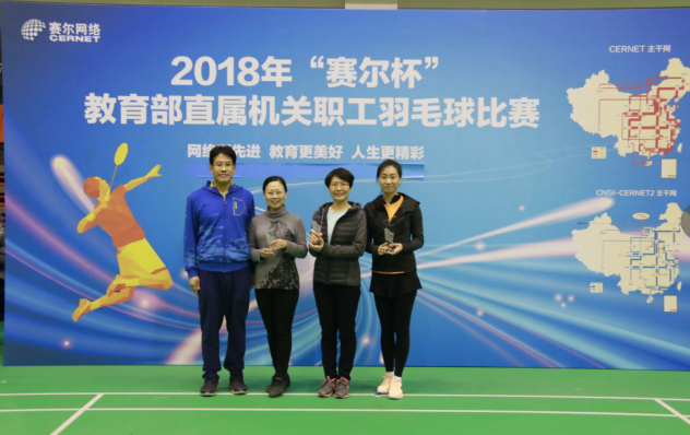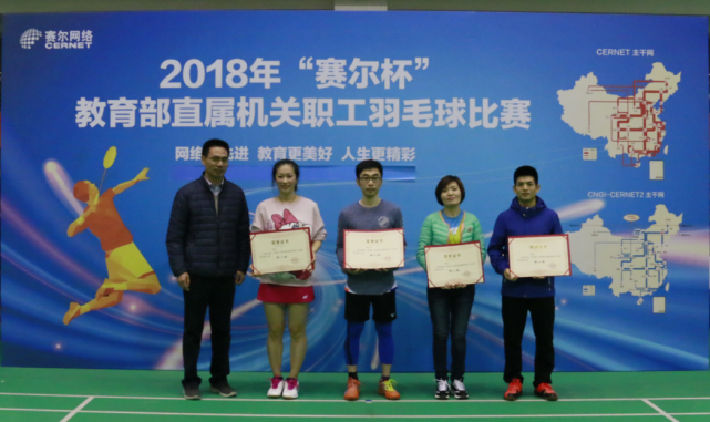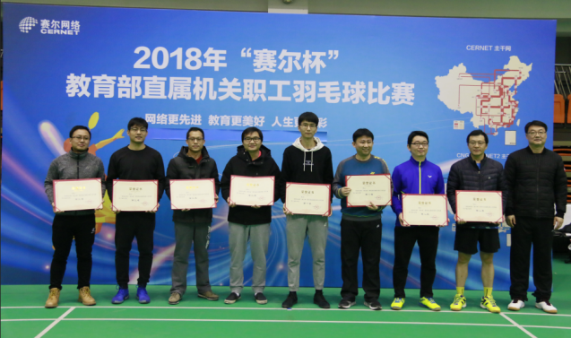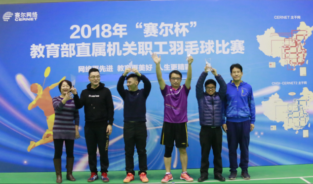 由賽爾網(wǎng)絡(luò)有限公司協(xié)辦的2018年"賽爾杯"教育部直屬機(jī)關(guān)職工羽毛球比賽,12月27日—28日在北京郵電大學(xué)體育館成功舉行。經(jīng)過兩天的緊張比賽,圓滿決出了各個獎項的前三甲。28日下午舉行的閉幕式上,教育部人事司副巡視員張國輝,人民教育出版社總編輯郭戈,國家教育行政學(xué)院黨委副書記、紀(jì)委書記朱保江等領(lǐng)導(dǎo)出席了儀式,并為獲獎團(tuán)隊頒獎。