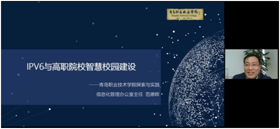 青島職業技術學院信息化管理辦公室主任范德輝,在報告中提出了IPv6與高職院校智慧校園建設應從夯實基礎,做優環境,制定標準,統一門戶,匯聚數據,深化應用方面開展。