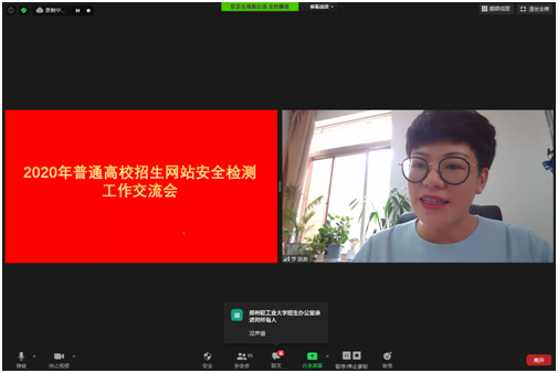 為使河南省各高校順利完成2020年高校招生網站安全檢測工作,河南分公司結合教育部學生司相關要求,于6月23日下午通過ZOOM視頻會議的形式舉行了“2020高校招生網站安全檢測工作交流會”,來自全省高校的120余名招生負責老師應邀參加。