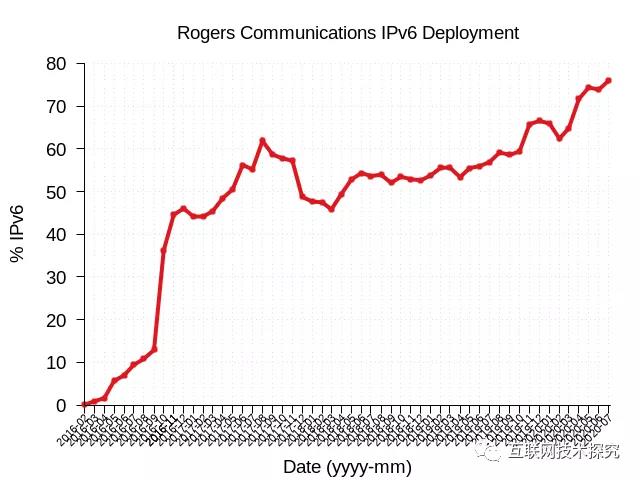 圖11 Rogers Communication IPv6部署曲線圖 |